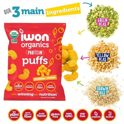 Iwon Organics Protein Puffs Cheddar Cheese Flavor, Vegan
